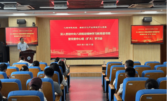 5月21日下午,心理学院党委、国家文化产业研究中心党委举行深入贯彻中央八项规定精神学习教育读书班暨党委理论学习中心组(扩大)学习会,深入学习习近平总书记关于加强党的作风建设的重要论述和中央八项规定精神。学习会邀请校党委巡察办公室主任、校中央八项规定及其实施细则精神宣讲团副团长王琍作报告,心理学院、国家文化产业研究中心两家单位的党政领导班子、理论学习中心组成员、全体教职工党员、学生党员代表参加会议,院(中心)党委书记连海江主持会议。