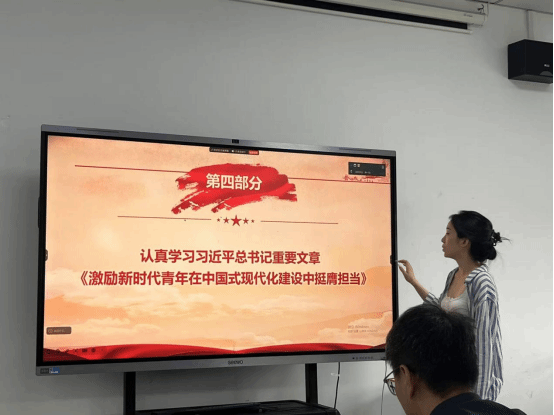 会议的第四部分,全体党员共同研读习近平总书记《激励新时代青年在中国式现代化建设中挺膺担当》一文。5月1日,习近平总书记在《求是》杂志发表重要文章《激励新时代青年在中国式现代化建设中挺膺担当》。文章明确,新时代青年工作的主题是“围绕党的中心任务”,要求共青团“强化政治引领、服务青年成长”。文章指出,要充分激发新时代青年在中国式现代化建设中挺膺担当。中国式现代化是强国建设、民族复兴的唯一正确道路,是一项前无古人的开创性事业。共青团要坚持围绕中心、服务大局,主动对接国家重大战略和重大任务,组织动员广大青年立足本职岗位,积极投身中国式现代化建设,在科技创新、乡村振兴、绿色发展、社会服务、卫国戍边等各领域各方面工作中争当排头兵和生力军。
