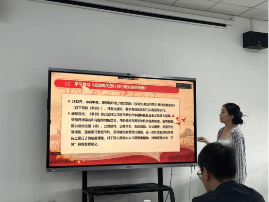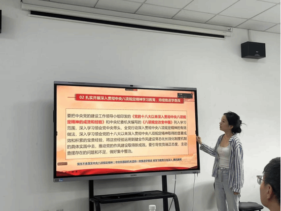 随后,活动第二部分聚焦八项规定实施以来的历史性成就。叶芷妤同志通过数据与案例,解读了八项规定如何从“小切口”推动全面从严治党“大变局”。她提到,党的十八大以来,全国共查处“四风”问题116.7万起、处分108.1万人,作风建设常态化机制有效遏制了特权思想与形式主义的歪风邪气。八项规定历史性地改变中国,已经成为新时代管党治党的“金色名片”,必须倍加珍惜、不断擦亮。要深入学习领会习近平总书记关于加强党的作风建设的重要论述,扎实开展深入贯彻中央八项规定精神学习教育,把严的基调长期坚持下去,锲而不舍落实中央八项规定精神,持续放大综合效能,为以中国式现代化全面推进强国建设、民族复兴伟业提供坚强作风保障。党员们结合科研实际,反思学术浮躁现象,提出“将中央八项规定精神融入科研伦理”,倡导严谨治学,强化科研作风建设。