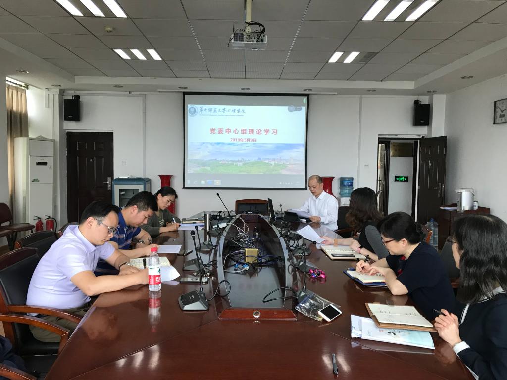 分党委书记马新华首先向中心组成员传达了学校4月30日分党委书记会议的有关精神,随后带领大家学习了2019年全国两会精神。