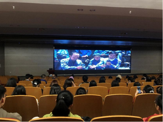 在观影过程中,师生都沉浸于电影的纪实与感动,仿佛也回到了那个物质贫乏却充满干劲的年代,去真实见证了为人民谋福祉的好干部的一生,剧中焦裕禄一句句感人肺腑的话语引得在场观众热泪盈眶。看过影片的同学表示:“焦裕禄书记是一名优秀的党员干部,直到看了这部电影,我才深深地体会到:哪有什么岁月静好,不过是有人在替我们负重前行。”