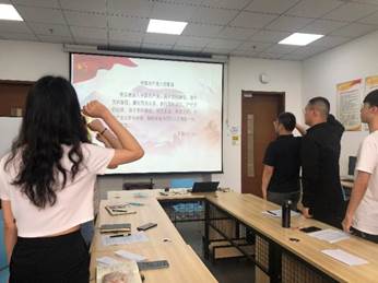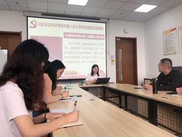 首先,黄宇同志带领支部党员学习习近平总书记考察中国人民大学时的重要讲话精神。黄宇从扎根中国大地办大学、“回答时代之题 彰显中国之理”、“经师”和“人师”相统一、“勇当开路先锋 争当事业闯将”四个方面对习总书记的讲话精神进行了解读,领会习总书记“扎根中国大地,走出一条建设中国特色、世界一流大学的新路”的指示。