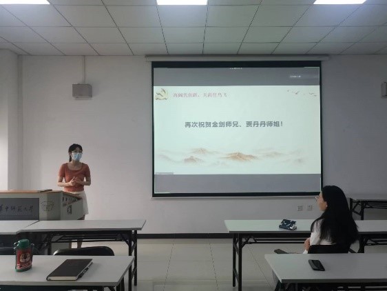 最后,黄月同志对本次主题党日活动进行了全面的总结,肯定了大家本次理论学习的效果。同时作为支部代表为毕业生赠予了华师纪念品并送上了美好祝福,希望毕业生们能够在未来“牢记初心使命,践行责任担当”,希望支部活动在毕业生同志们的建议下越办越好。