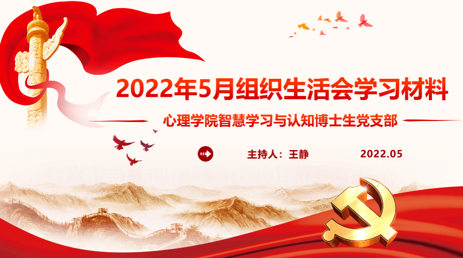 2022年5月27日中午,华中师范大学心理学院智慧学习与认知博士研究生党支部于南湖综合楼8010开展了5月主题党日活动。本次党日活动由支部成员王静同志领学,智慧学习与认知博士研究生党支部全体党员参加。会议由支部书记黄月主持。