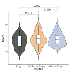 实验 1 显示,刻意犯错与诱导犯错两种策略的记忆测验成绩,均显著优于单纯抄写的无错学习法,证实 “犯错” 本身是高效学习催化剂。在基础条件下,两种错误策略的学习效果无显著差异。