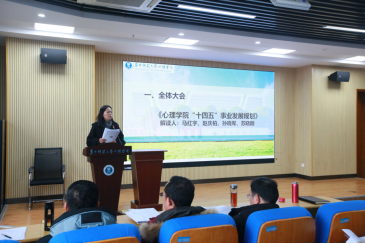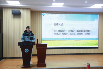 马红宇、孙晓军、赵庆柏、苏晓刚等四位班子领导成员分别结合自身分管工作,对《心理学院“十四五”发展规划》进行了全方位的解读和阐释。马红宇从《规划》的制定背景、框架和内容出发,就整合学院建设力量、师资队伍建设和学科平台工作等方面进行了重点介绍。孙晓军从科研项目数量与质量、科研平台建设、研究生培养几个方面出发,对比国内兄弟高校的有关数据,对《规划》进行了详细解读并介绍了下一步工作思考。赵庆柏重点解读了本科人才培养和教学实验实践的建设工作。苏晓刚从“从哪里来”、“到哪里去”“怎样去”三个方面解读了学院党委与思想政治教育工作规划。