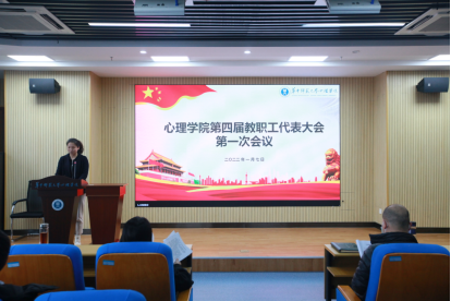 2022年1月7日,心理学院第四届教职工代表大会第一会议在南湖综合楼8060报告厅举行,会议审议通过了《心理学院“十四五”发展规划》,为科学谋划下一个五年的事业发展,推近心理学争创一流学科建设具有重要意义。心理学院党委书记马新华、常务副院长马红宇、党委副书记苏晓刚、副院长孙晓军、赵庆柏,学院全体教职工以及部分学生代表出席会议,会议由心理学院工会主席田媛主持。