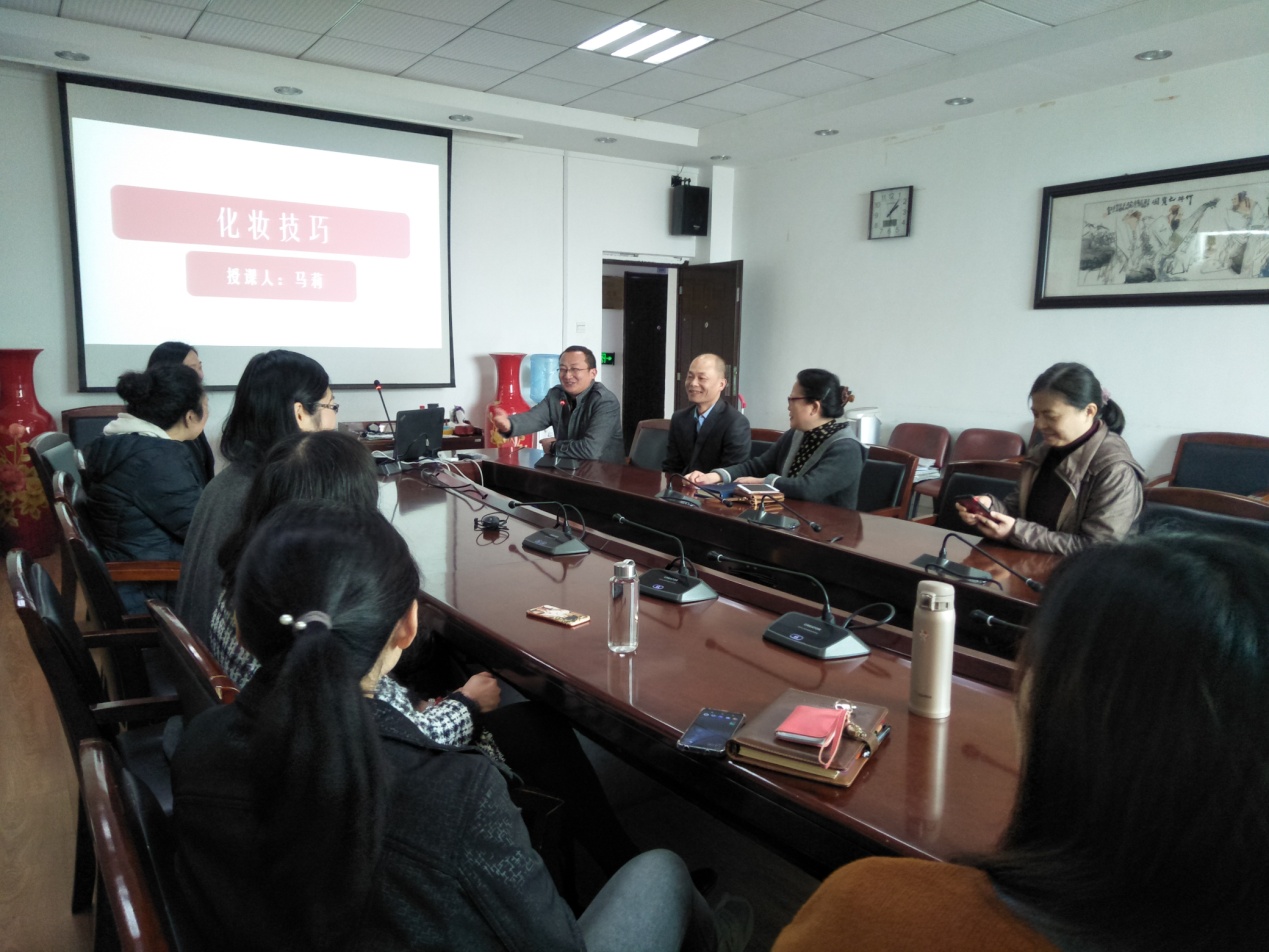 3月15日下午,为帮助广大女教职工塑造更加美丽的仪表形象、升华内外气质,实现“一瞬之美、一生之美”,心理学院工会特举办专属女神福利的化妆技巧培训活动。院党委书记马新华、党委副书记苏晓刚参加了活动。