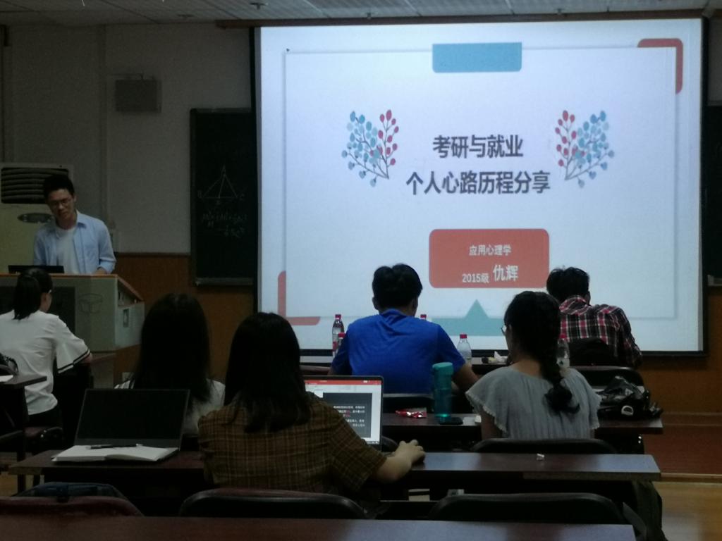 (通讯员 衣艺鸣)5月19日晚,由心理学院团委学生会学科部主办的“我的未来我做主——优秀毕业生分享会”在田家炳教育书院905举办。本次分享会面向心理学院全体学生展开,参与分享的嘉宾有心理学院15级优秀毕业生周浩然、谷浠萌、徐帅、仇辉、黎秋玲、张燕玲。本次活动由18级肖博源同学主持。