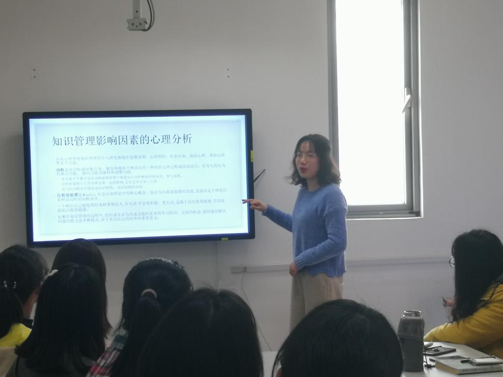 茶话会主要就会社交接工作情况、从心理学角度向成员们介绍知识管理、共同讨论今后社团发展方向等内容进行了交流探讨。杨璐首先总结公布了知识管理会社的换届工作的交接情况,鼓励成员们积极参与会社的下一步建设。随后,由知识管理会社社长龚梓仟从心理学角度向成员们介绍知识管理。她从定义、知识管理的发展历程、知识管理对象、知识管理的心理学研究、知识管理影响因素的心理分析等多个方面系统地对知识管理做了介绍,旨在帮助成员们更好地理解知识管理的历史和意义,激发成员们的参与热情。在答疑解惑和分组讨论时段里,成员们踊跃发言,提出疑惑,陈述想法。茶话会在热情洋溢的气氛中进行着。