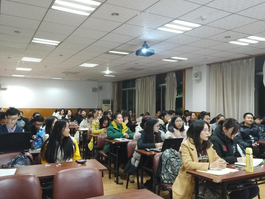 随后,赵慧颖围绕本学期团队建设、学期总结以及明年工作目标三个部分发表了讲话。她强调,加强团队建设是本学期的主要目标,无论是户外素质拓展还是“包饺子”活动,都是为了加强团学会成员间的凝聚力,让大家感受到归属感、融入感。同时,她对本学期迎新晚会、运动会等大型活动中各部门的辛勤工作表示肯定,但也对其中存在的问题进行了反思,强调“有反思才有总结”,希望大家总结经验,砥砺前行。杨璐也对各位的努力付出表达了感谢,同时寄语“所有的优秀都是苦行僧般的修行”表以鼓励,希望大家不忘初心,在新的一年里再接再厉。