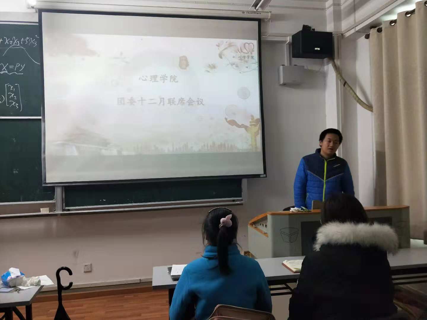 (通讯员 王俊蒙 蔡李雪)12月6日中午,心理学院团委十二月联席会议在田家炳楼710室召开。心院团委副书记赵慧颖、团委学生会组织部全体成员以及17、18级各团委支部参加了此次会议。此次会议的主要目的是对上月团日活动进行总结,并讨论本月团日活动主题,进而加强校团日活动的建设,同时促进心院团支部的发展。会议由组织部成员许心阳主持