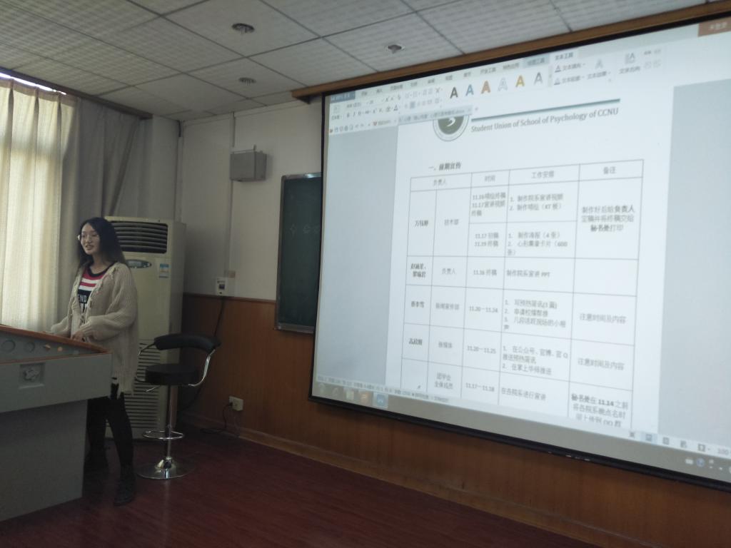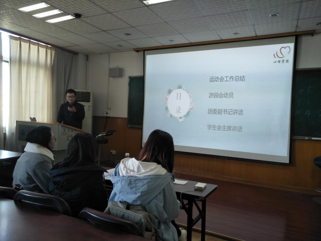 (通讯员 蔡李雪 张宽)11月9日中午,心理学院团委学生会运动会总结大会暨游园会动员大会于田家炳楼905教室召开。心院团学会全体成员参与了本次会议。会议由组织部干事陆晓鹏主持。