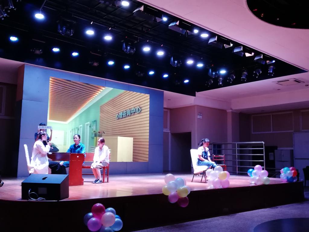 之后,“新风团队”以悬疑的方式带来了心理咨询师与来访者之间的爱恨情仇,新奇的表演风格令人眼前一亮。阴谋与爱情之间的纠葛,令人为之叹息。 “佛系少年队”上场后,气氛由沉重变为欢乐,男扮女装的“董佳怡”一下子就变成了场上的焦点。他们以平常生活中的故事片段展现了“酸葡萄效应”的心理学小知识。