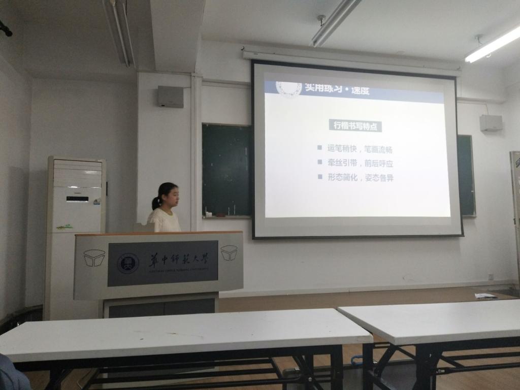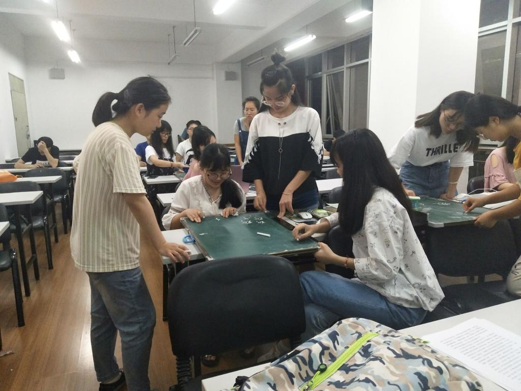 (通讯员 吴晓萱)5月2日晚,心理学院2016级师范班在田家炳501室进行了最后一次师范生粉笔字培训。本次培训的指导老师是华中师范大学师范生书写能力训练指导团的成员屈妍玥。本次粉笔字培训的主要目的是针对传统教学实战中,课堂时间与教学质量的共同要求,作为一名师范生,需要在具体的教学情景中提高板书的书写速度。