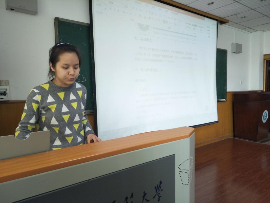 大会主要对心院即将举办的心理剧大赛作策划讲解。首先是策划组组长,组织部干事黄晶菁讲解活动总策划。对活动总规作了简单介绍后,黄晶菁着重说明了活动的报名流程及比赛评比流程。活动经过初期宣传后,参赛选手可通过线上具体指示操作进行报名。比赛又分预赛和决赛,分别给各个部门的干事分发了不同的任务。