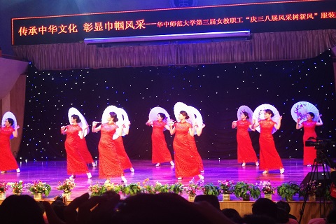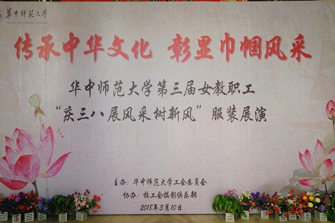 3月10日下午,由华中师范大学承办的本校第三届主题为“传承中华文化,彰显巾帼风采”的女教职工“庆三八、展风采、树新风”服装展演在本校音乐厅顺利开展。本次活动由各个学院女教师以及校各部门女职工共400余名选手参加。