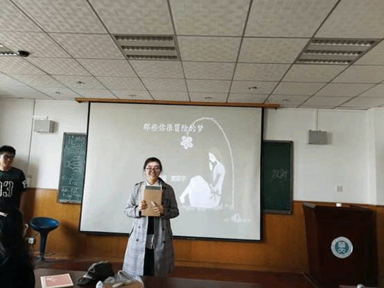 最后一个环节是礼品颁发。在节目表演结束后,团支书杨丽萍在支部群中发起群投票,同学们都给自己喜欢的节目投上了宝贵的一票。群投票结果显示,樊思宇以一首婉转悠长的歌曲获得第一名,随后,青协委员张昭乐向表演者们赠送了小礼品,以资鼓励。
