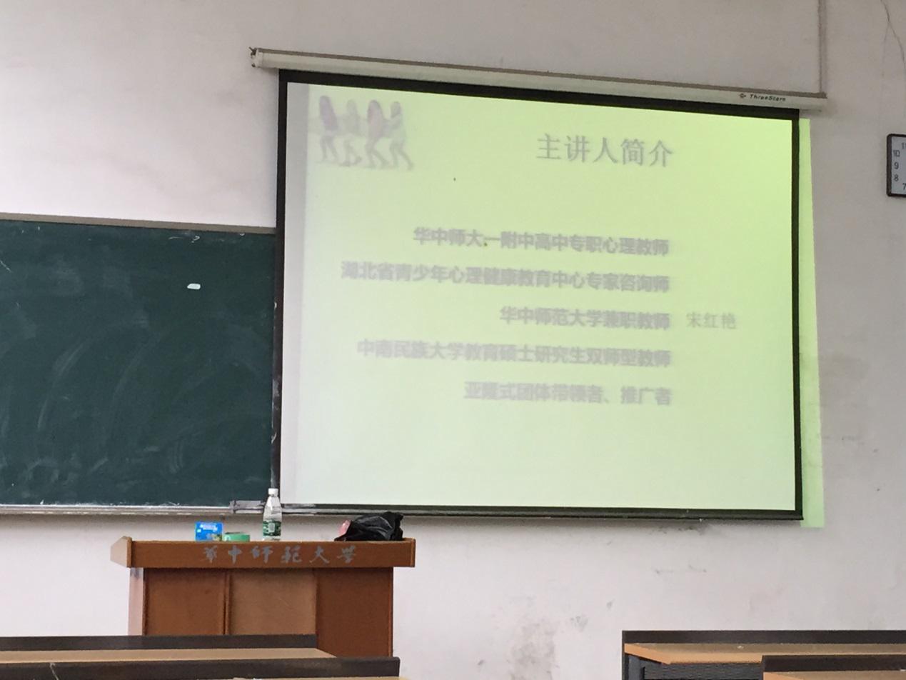 (通讯员:李萍 摄影:林琳)5月22日下午14:00,湖北省青少年心理健康教育中心专家咨询师、国家二级心理咨询师宋红艳老师做客华中师范大学,为该校心理学院研究生带去一场以“人际交往”为主题的心理健康教育讲座。