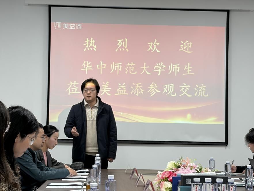 参观结束后,双方在会议室开展专题研讨。美益添董事长沈鹤霄博士首先致欢迎辞,对华中师范大学一行的到来表示热烈欢迎,介绍了企业在青少年心理健康领域的产业布局,并指出:“心理学关注的是心智的‘软件’,而美益添探索的是支撑这套‘软件’稳定运行的生物学‘硬件’——肠道微生态。两者的结合,是真正实现青少年心身健康精准干预的必然之路。”