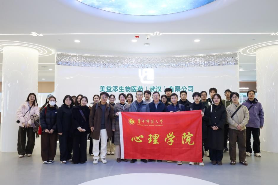 2025 年 11 月 19 日下午,华中师范大学心理学院、信息管理学院师生一行 28 人在青少年网络心理与行为教育部重点实验室常务副主任王伟军教授和洪建中教授的带领下赴美益添生物医药(武汉)有限公司(以下简称美益添),开展“走进企业・深化产学研合作研讨暨就业创业交流活动”。本次活动旨在深入了解“肠-脑轴”与心理健康的影响及企业需求,围绕“青少年抑郁多模态评估及AI干预小程序产品”研发,深化产学研合作,夯实校企实践平台,助力心理健康跨学科人才培养和行业发展。