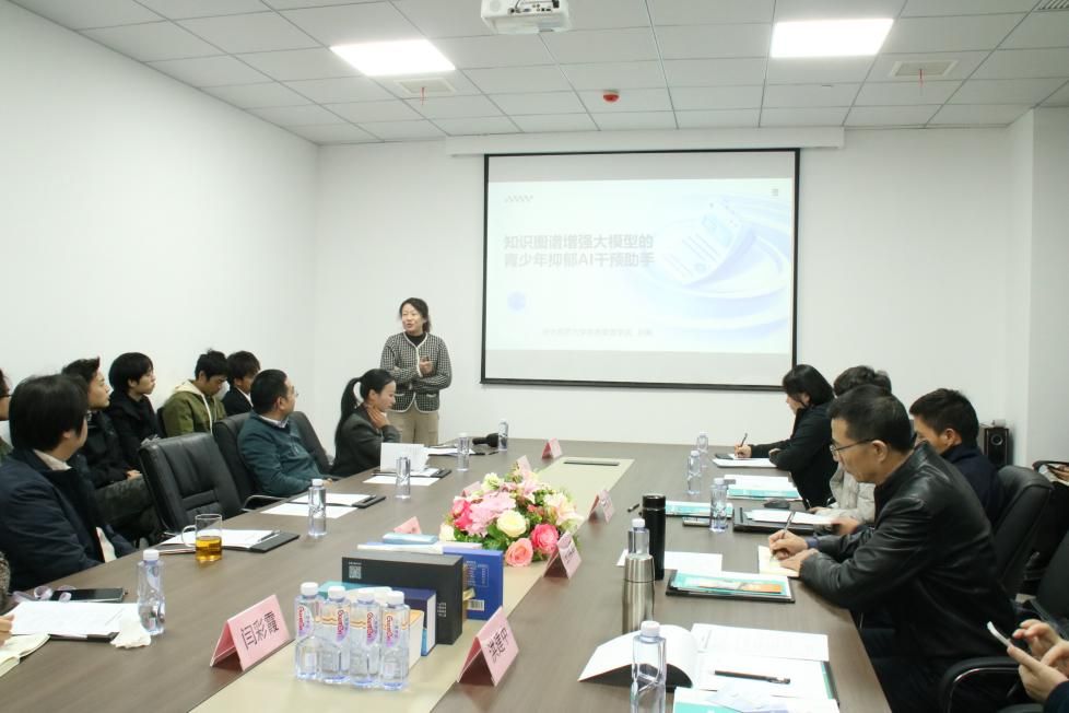 随后,三场主题分享相继开展:美益添技术团队详细介绍 “数智赋能青少年心理疾病的精准微生态诊疗技术体系”,拆解了菌群干预在抑郁治疗中的全流程技术路径;华中师范大学心理学院博士王显斌以“青少年抑郁症状测量”为主题,分享了项目开发中量表适配优化和多模态测评的应用;信息管理学院副教授刘蕤围绕“知识图谱增强大模型的青少年抑郁干预 AI 助手”的开发,讲解了知识图谱和生成式人工智能在心理干预场景中的创新应用和效果。